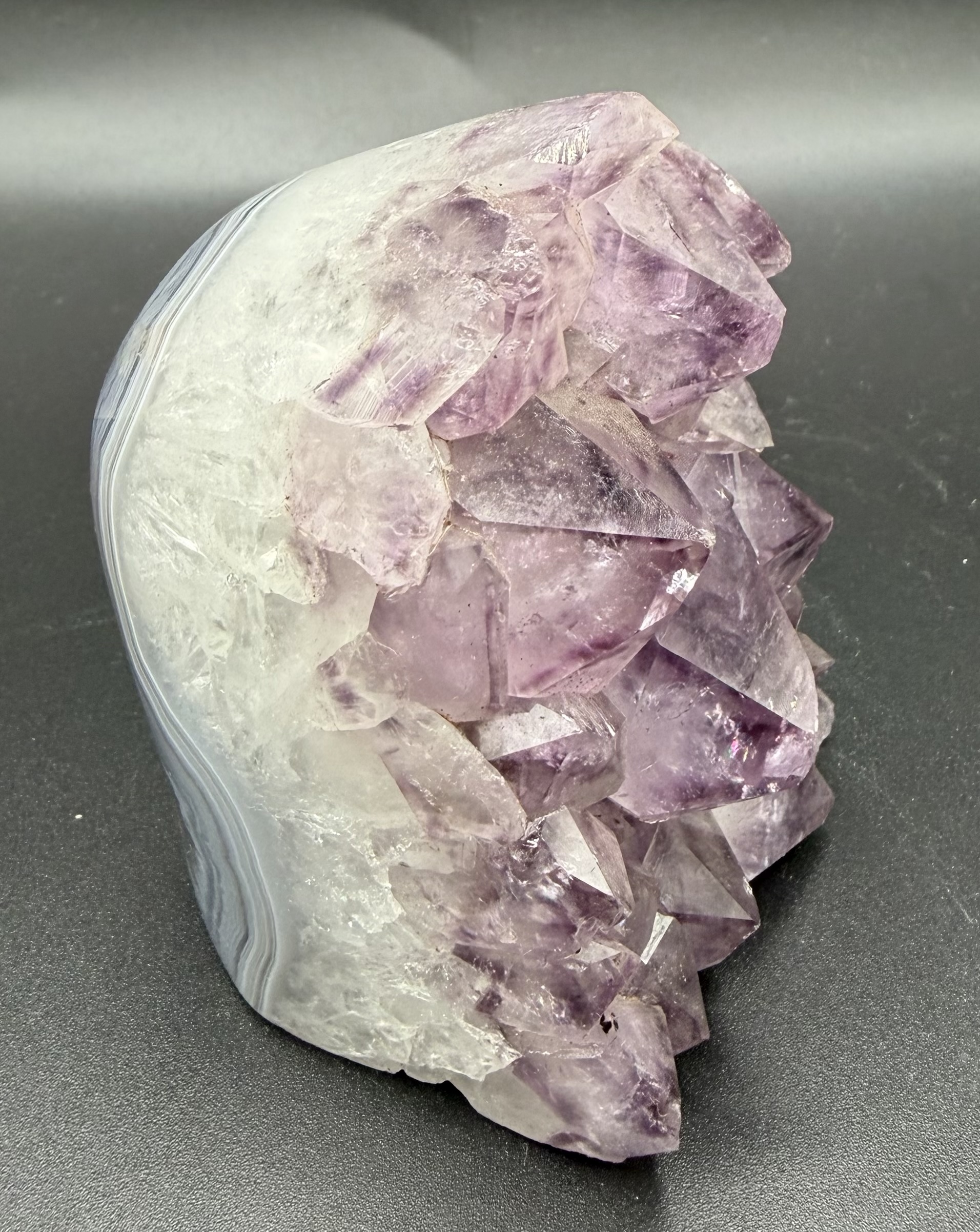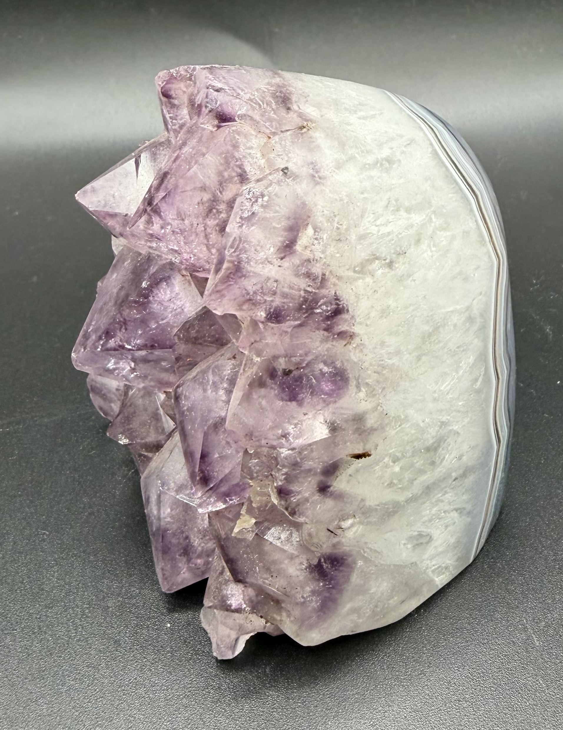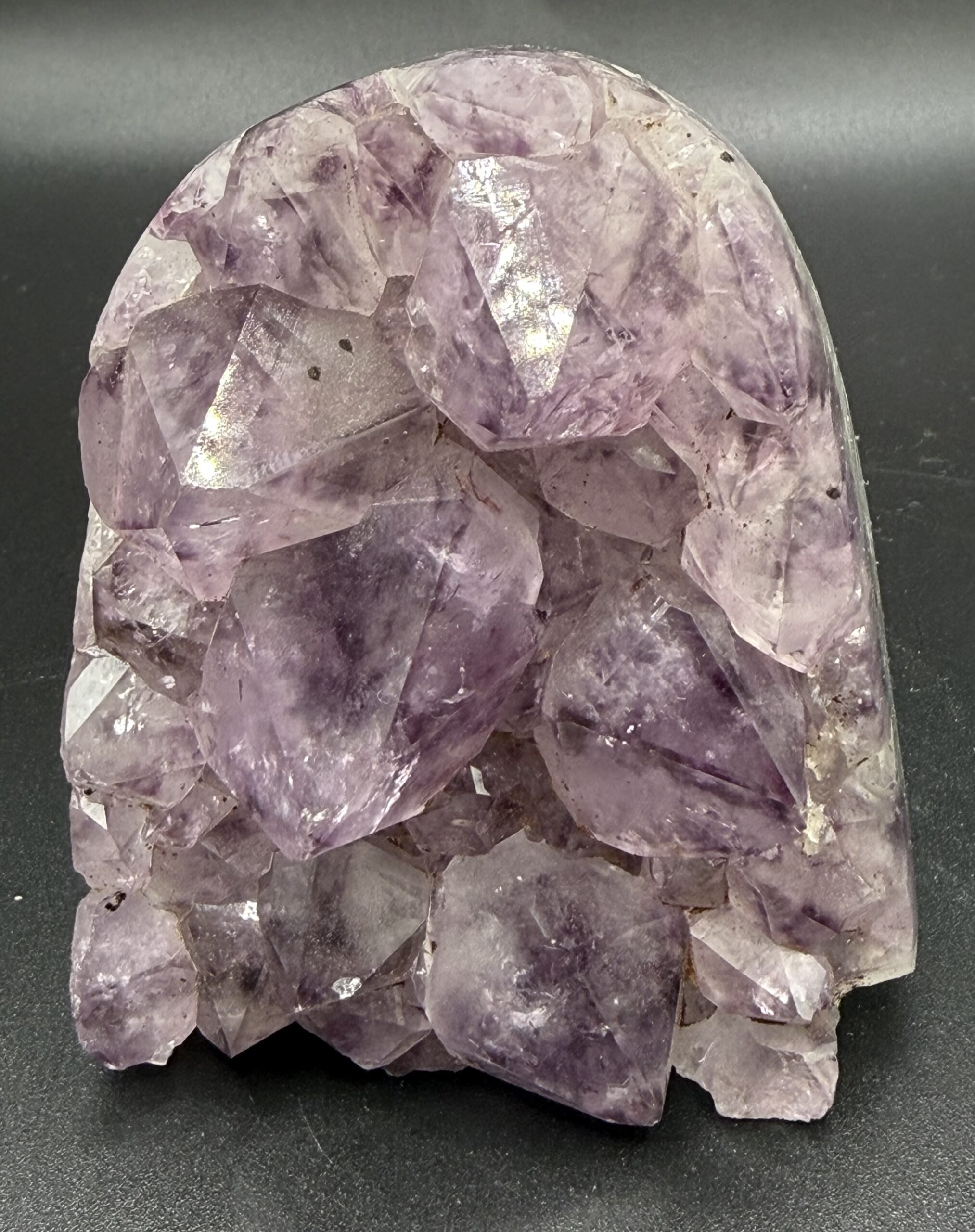 Cut based amethist met gepolijste rand uit Brazilië.